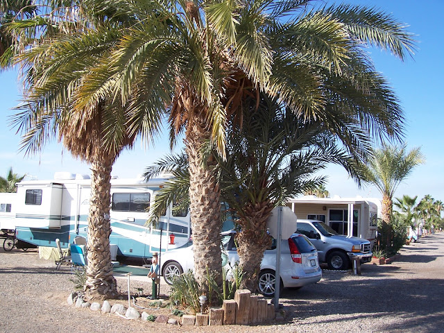 Date plantations are everywhere around us, except for the orange, lemon, grapefruit and tangelo orchards and the lettuce and alfalfa fields! Other than that, we're in date country.